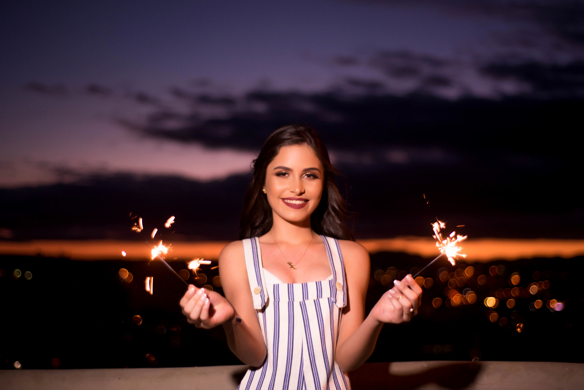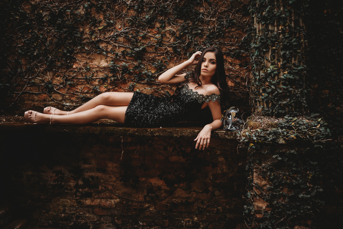 O ensaio de 15 anos da Luíza ficou maravilhoso. Fomos do misterioso ao descontraído.